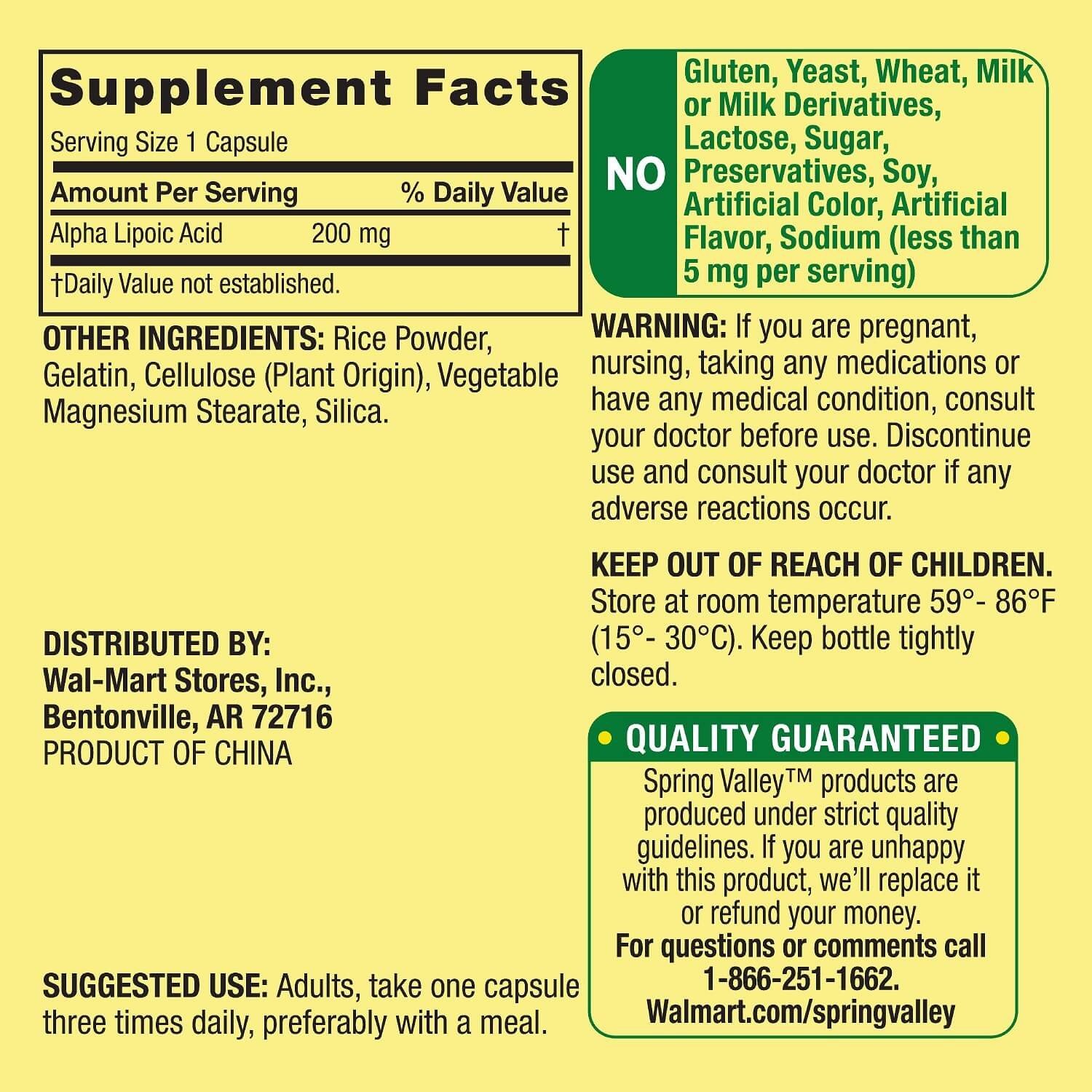 Lleve a casa las cápsulas de ácido alfa lipoico de Spring Valley hoy mismo.