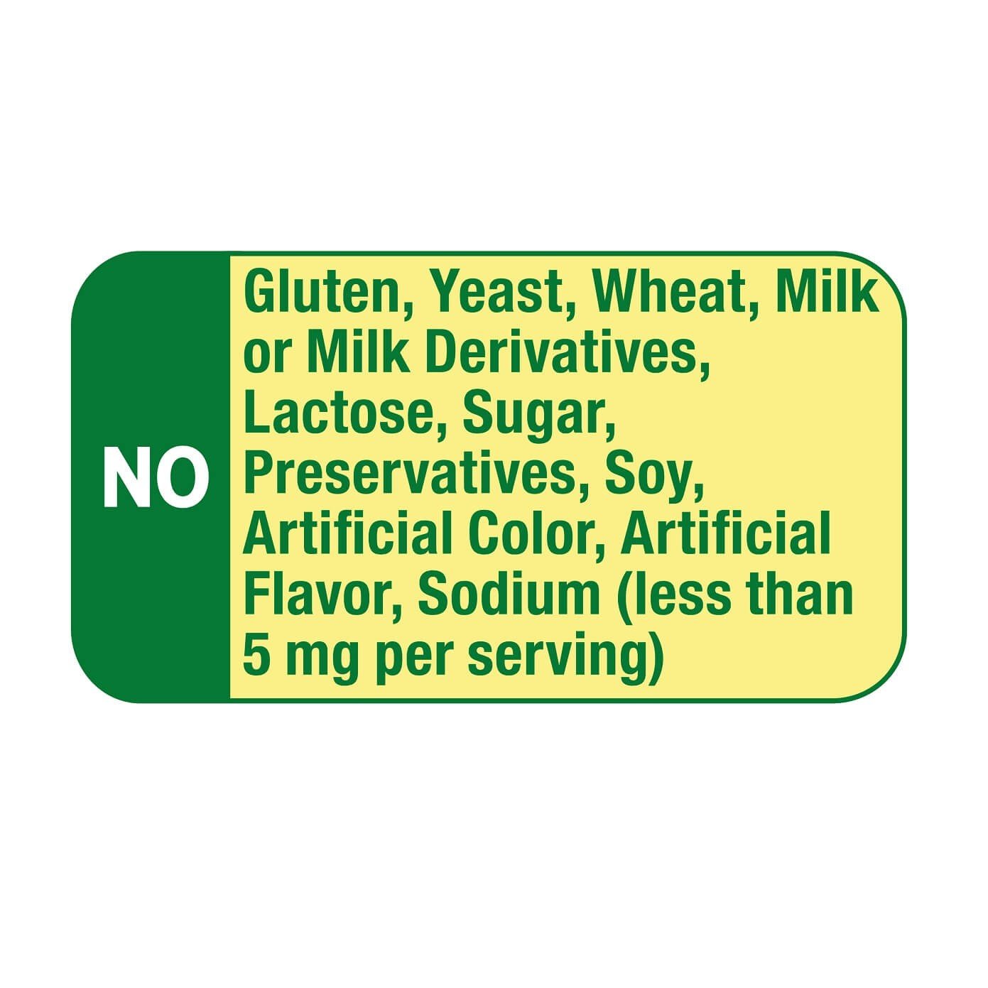- Libre de levadura, trigo, leche o derivados de la leche, lactosa,