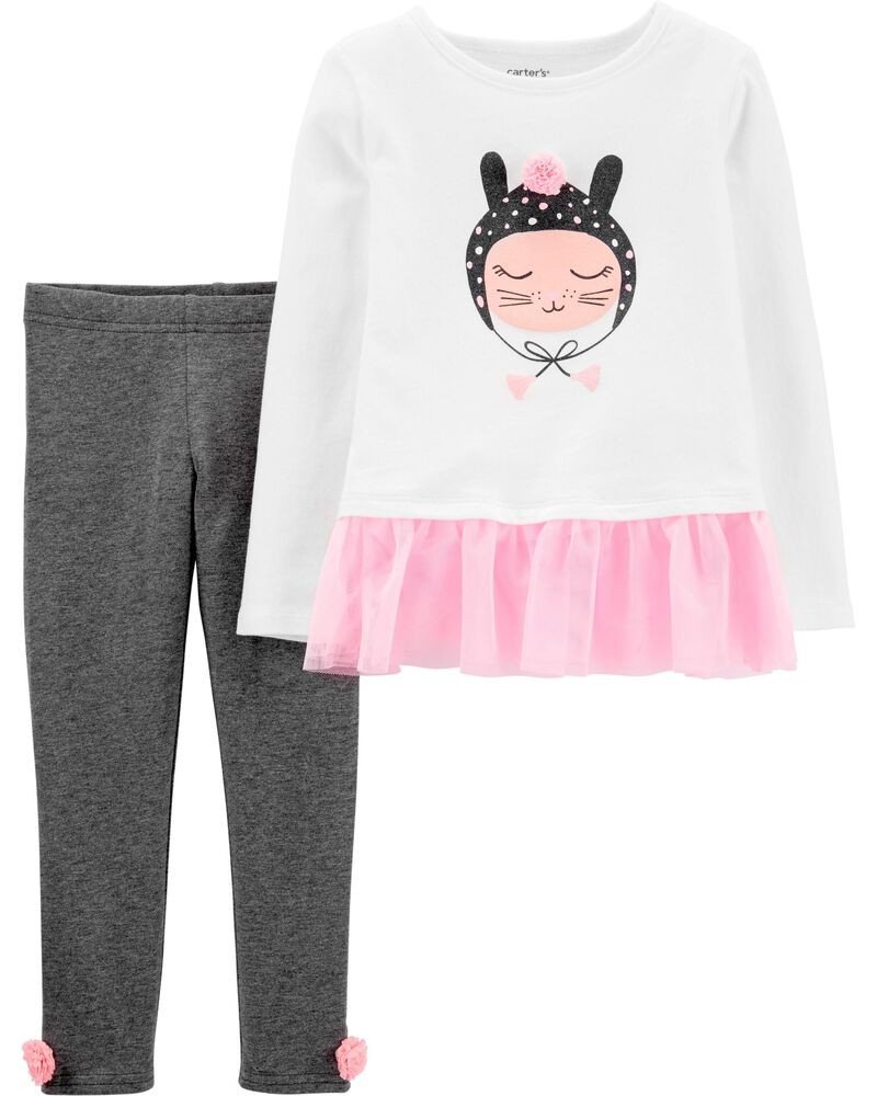 Confeccionada en un jersey liviano con un dobladillo de tul, esta blusa de gato se sienta bastante bien sobre las polainas de coordinación para un atuendo durante todo el año.