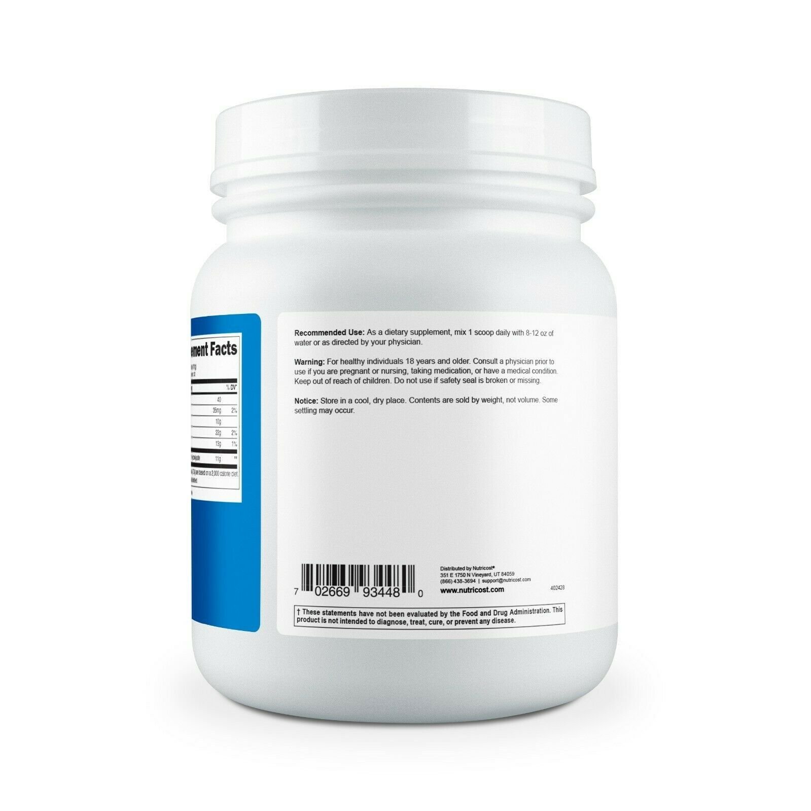Dosis: Uso sugerido: Adultos, disolver en un vaso de agua de 250 ml (aprox) una cucharada de colágeno hidrolizado de Nutricost.