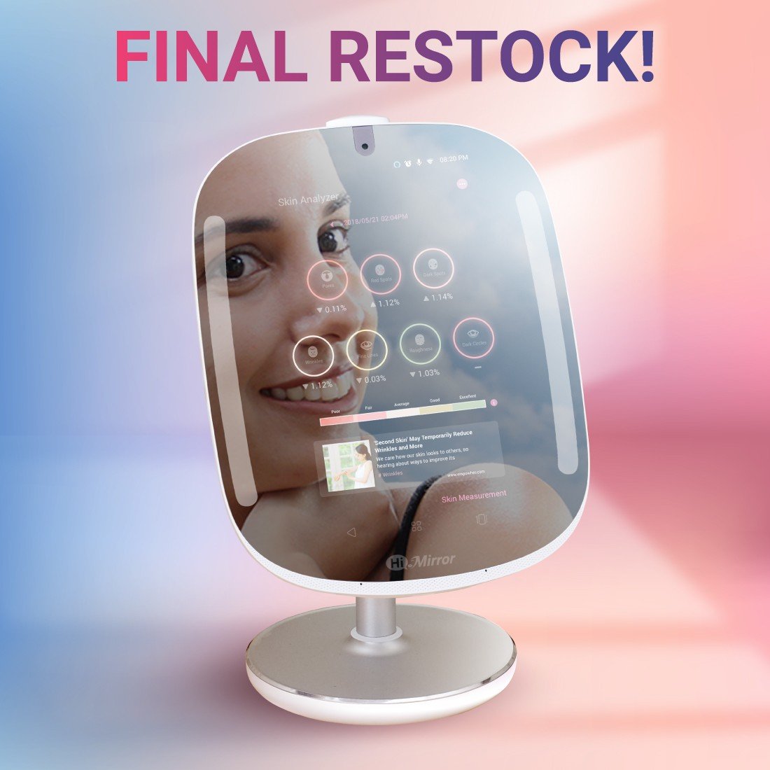 Con la avanzada tecnología de análisis de la piel de HiMirror, puede evaluar su piel en busca de arrugas, líneas finas, ojeras, manchas oscuras, manchas rojas, asperezas y poros. ¡Adapte su rutina de cuidado de la piel en función de sus resultados y alcance sus objetivos de cuidado de la piel!