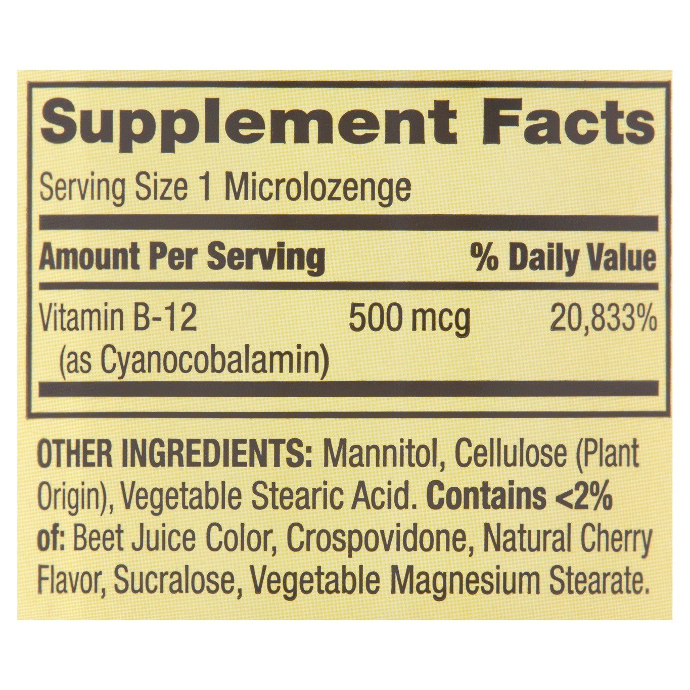 Vitamina B12 sublingual 5000 mg (500 mcg) con sabor a cereza