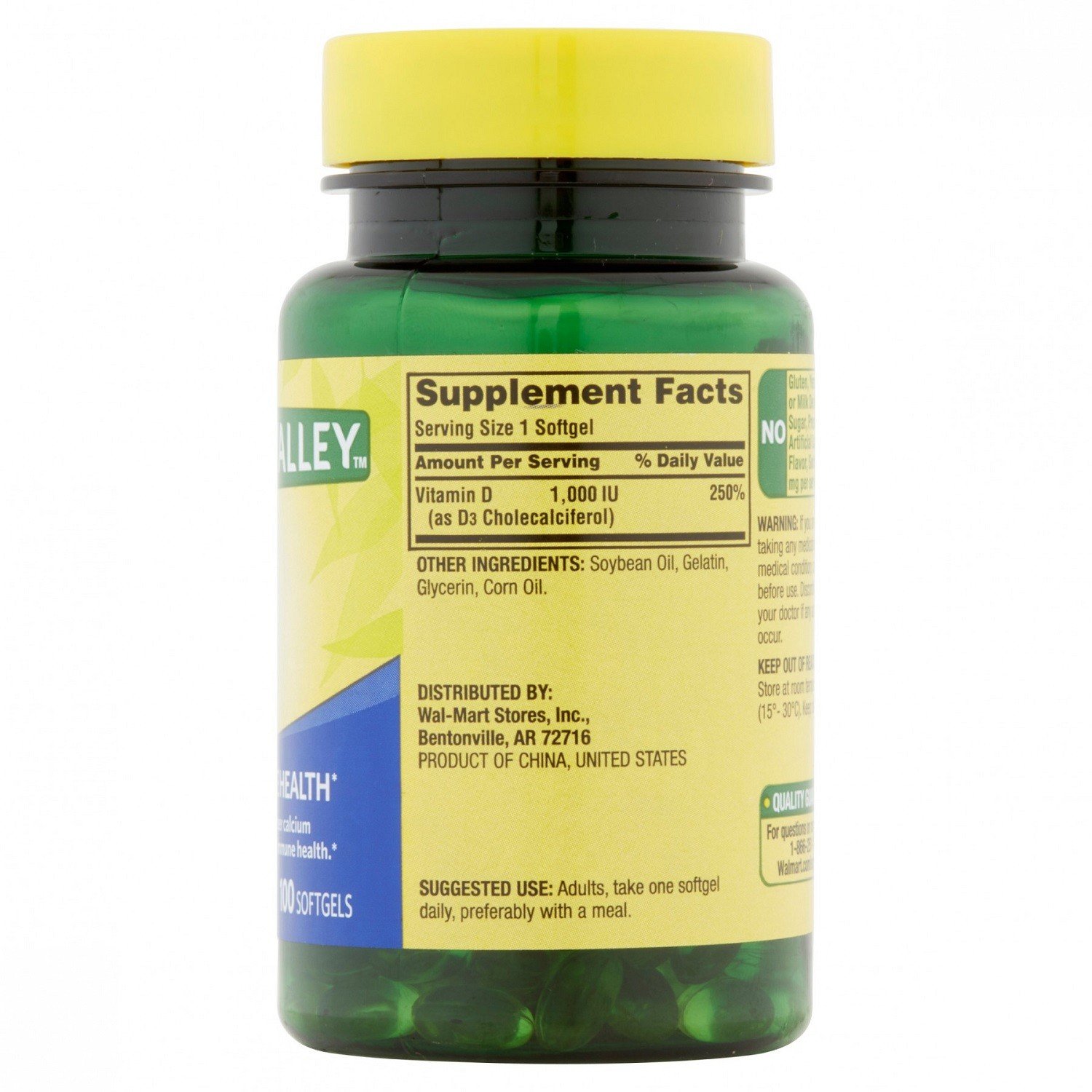 La vitamina D  de Spring Valley de 1000 IU es esencial para la absorción de calcio y está involucrada en la mineralización ósea adecuada. Además, la vitamina D juega un papel en el mantenimiento de los niveles de calcio y fósforo en la sangre, y ayuda a promover la salud del sistema inmunológico.